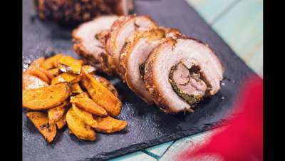 Piept de porc cu patrunjel, salvie si lamaie, la cuptor