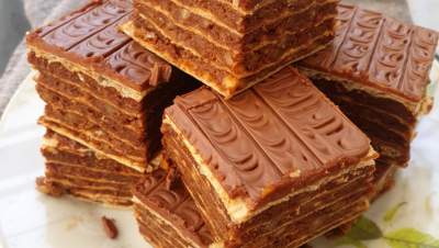 Prajitura cu foi de napolitane si crema de biscuiti - Gustoasa si spornica